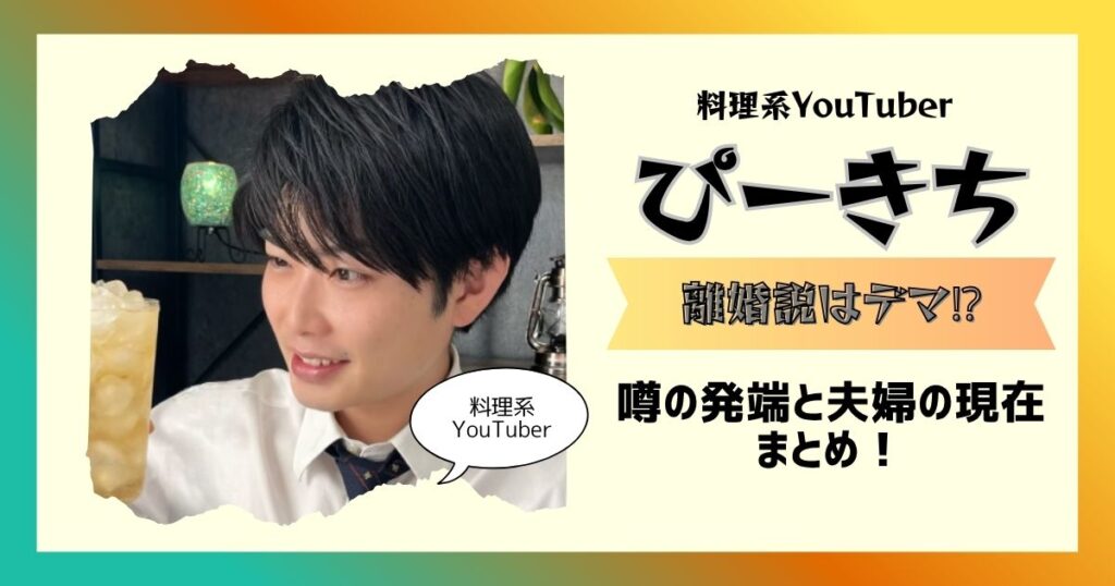 人気料理系YouTuber・ぴーきちさんに「離婚したって本当?」という噂が出回ったこと、知っていますか?結婚報告からまだ間もないタイミングだっただけに、びっくりしたファンも多かったようです。 でも実際には──離婚の事実は一切なし!ぴーきちさんは、今... -